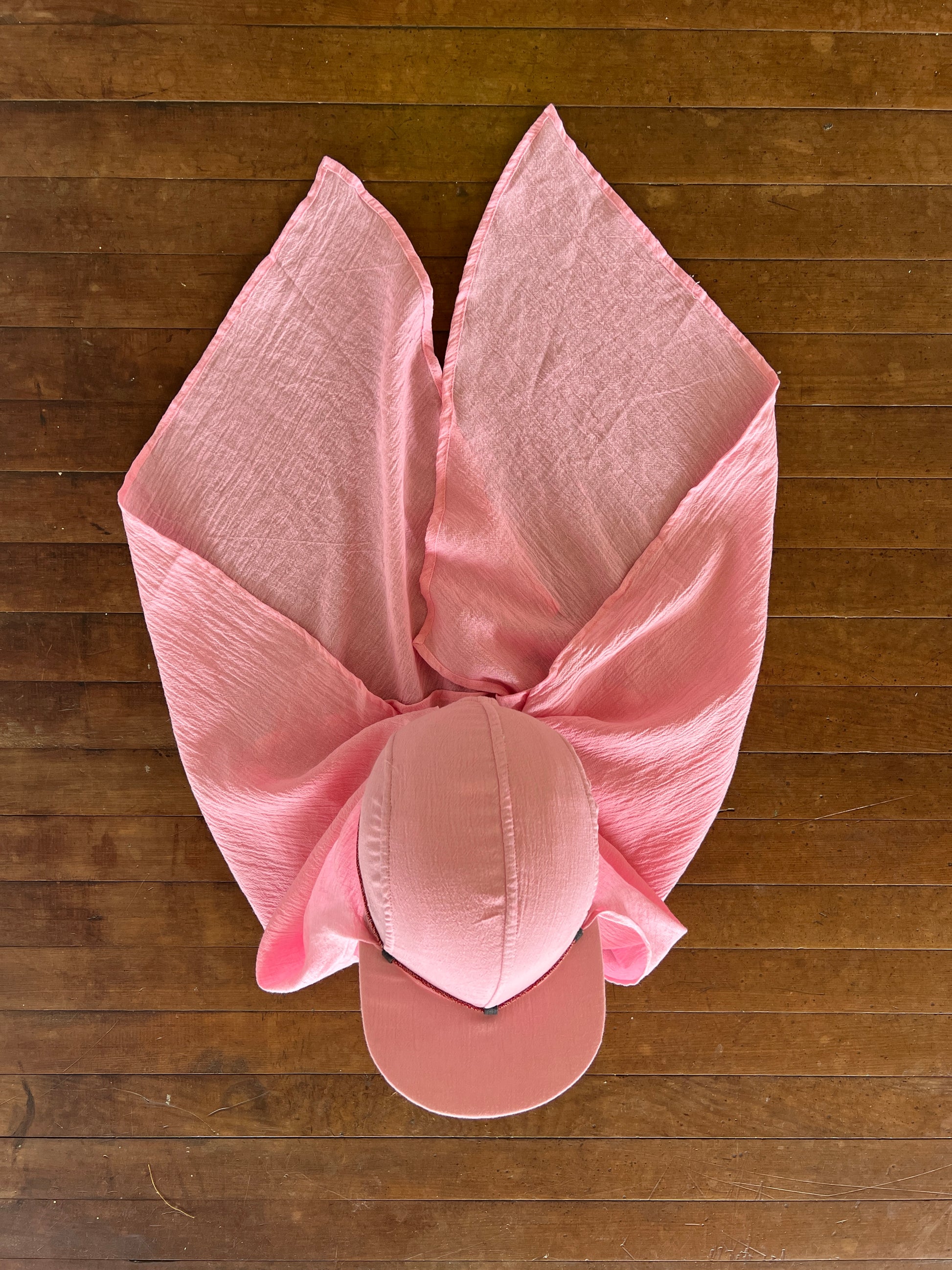 This headwear was designed to provide cover of your choosing, for sun, dust, or feel. Made from breathable natural fibres, the fabric of the hat can be draped as you need and held in place by elastic around the crown. The hats are one size, fits most. Cord elastic options can tie to create a more snug fit, if you wanted that. Price includes a JB tote bag, because we are all doing away with plastic and excess packaging, yes lawd.