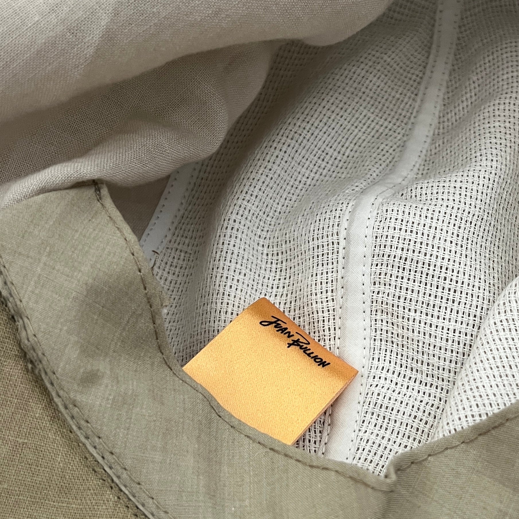 This headwear was designed to provide cover of your choosing, for sun, dust, or feel. Made from breathable natural fibres, the fabric of the hat can be draped as you need and held in place by elastic around the crown. The hats are one size, fits most. Cord elastic options can tie to create a more snug fit, if you wanted that. Price includes a JB tote bag, because we are all doing away with plastic and excess packaging, yes lawd.