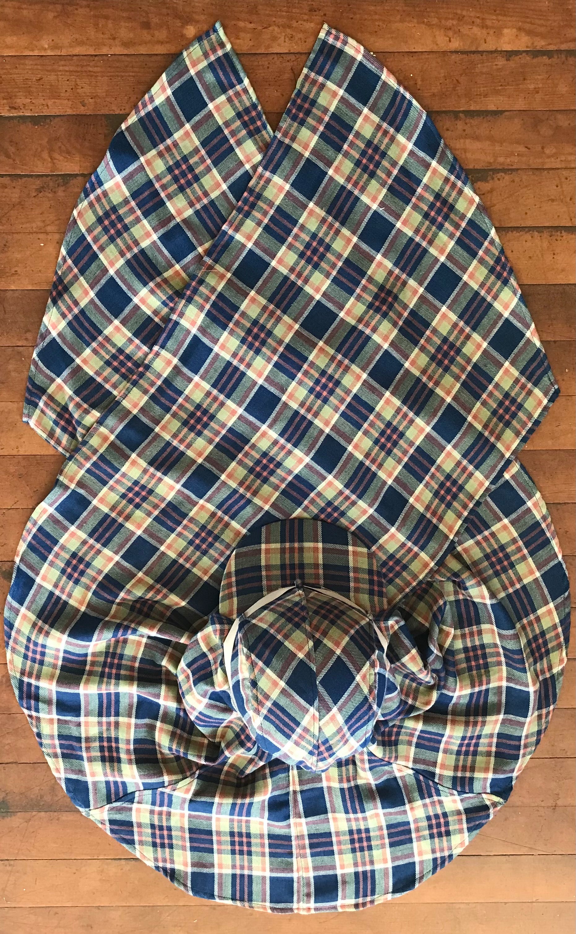 This headwear was designed to provide cover of your choosing, for sun, dust, or feel. Made from breathable natural fibres, the fabric of the hat can be draped as you need and held in place by elastic around the crown. The hats are one size, fits most. Cord elastic options can tie to create a more snug fit, if you wanted that. Price includes a JB tote bag, because we are all doing away with plastic and excess packaging, yes lawd.
