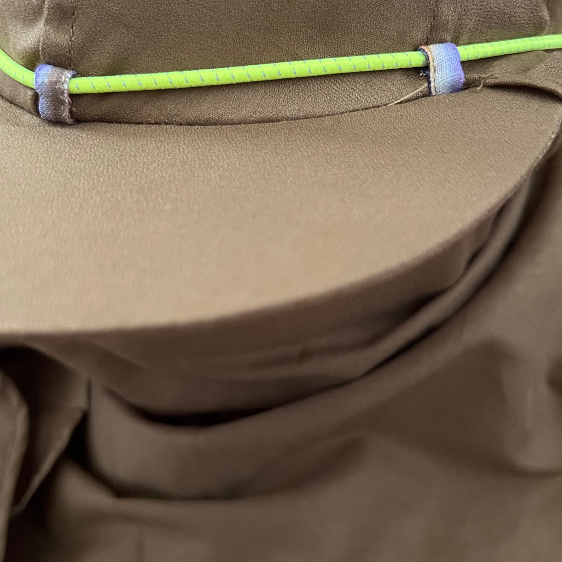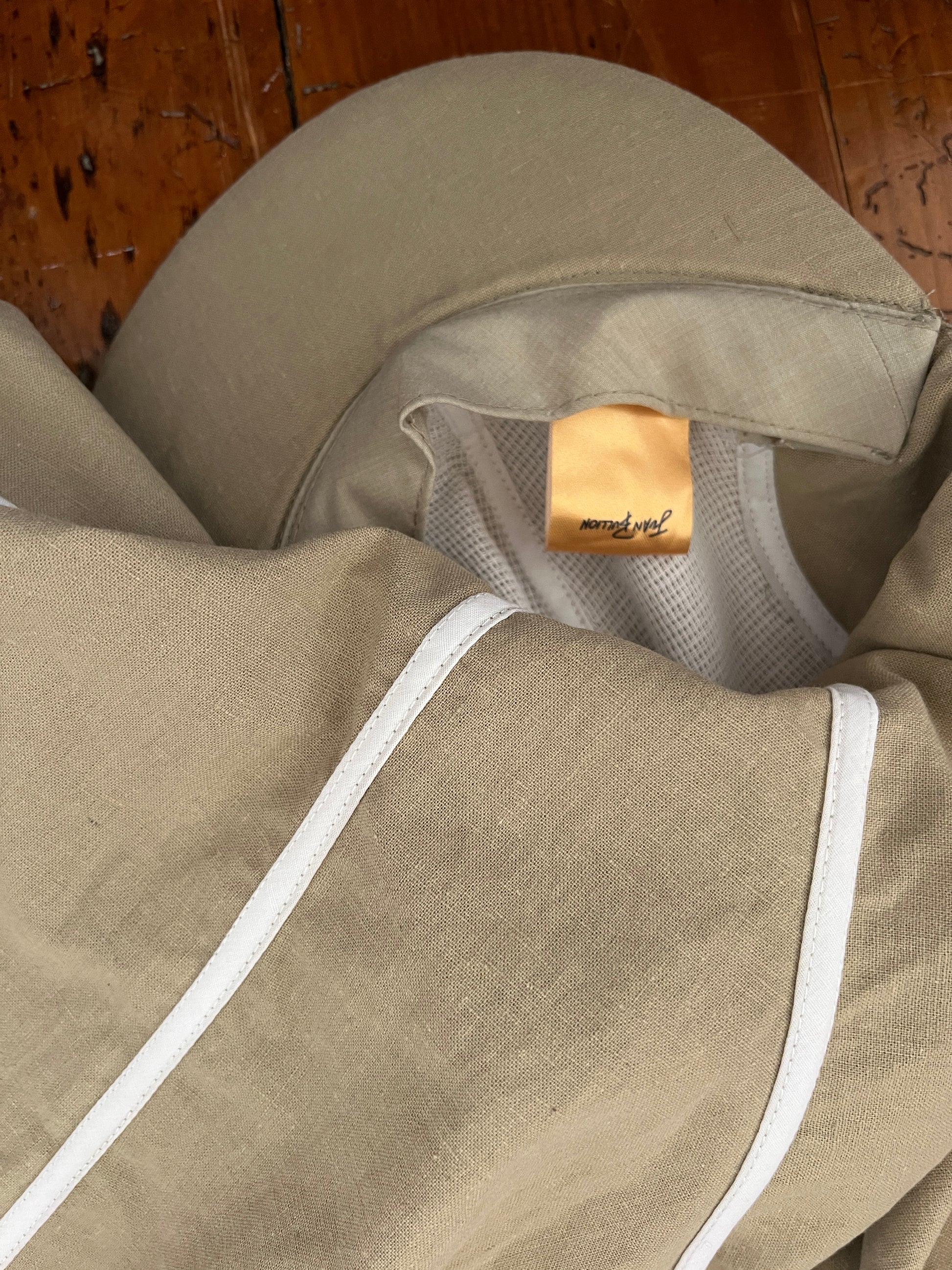 This headwear was designed to provide cover of your choosing, for sun, dust, or feel. Made from breathable natural fibres, the fabric of the hat can be draped as you need and held in place by elastic around the crown. The hats are one size, fits most. Cord elastic options can tie to create a more snug fit, if you wanted that. Price includes a JB tote bag, because we are all doing away with plastic and excess packaging, yes lawd.